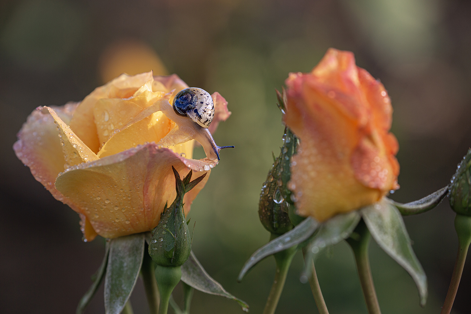- 촬영 팁: 100만 송이의 거대한 장미 군락 속에서, 241mm 망원 렌즈를 한껏 당겨 오직 꽃잎 위에서 분투하는 작은 달팽이 한 마리에게만 온전한 시선을 내어주었습니다. 조리개를 F7.1로 설정해 위태로운 달팽이의 투명한 더듬이와 빗물을 머금은 장미의 결을 또렷하게 살리면서도, 복잡한 배경은 부드럽게 지워냈습니다. 1/320초의 셔터스피드로 미끄러질 듯 말 듯 느릿하게 이어지는 녀석의 그 끈질긴 '1cm짜리 궤적'을 흔들림 없이 포착해 낸 것이 이 사진의 진짜 이야기입니다.